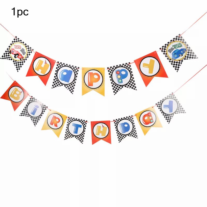 • 1 “Happy Birthday” Banner – themed with checkered flags