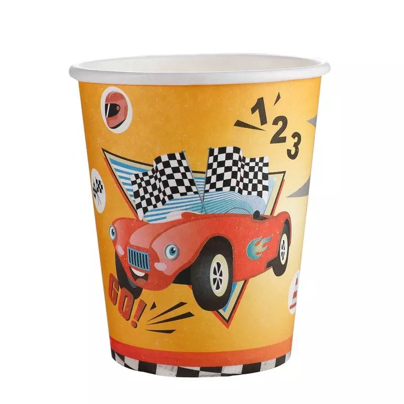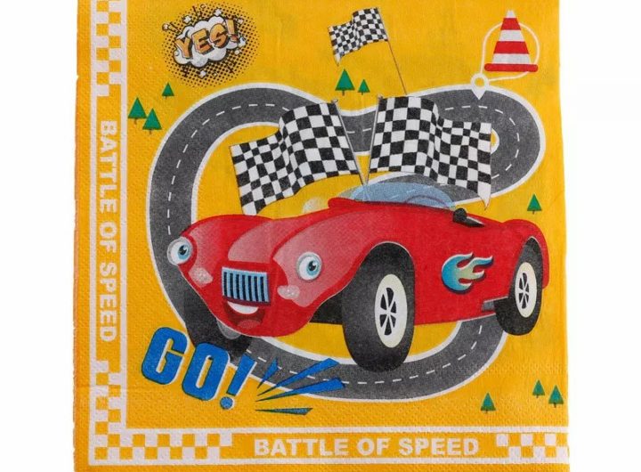 • Dynamic race car and checkered flag design – perfect for kids’ birthdays