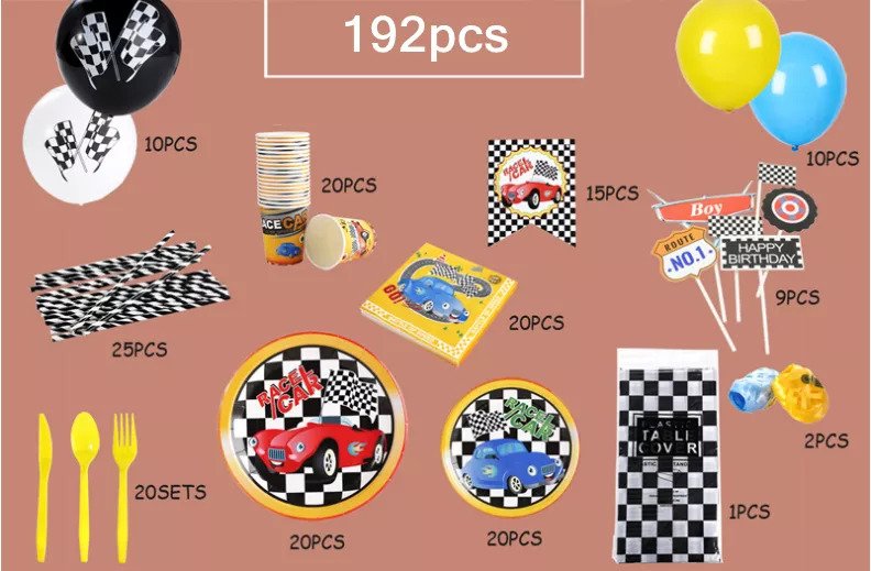 Start your engines and make your celebration unforgettable with the 192-Piece Car Racing Party Supply Set — everything you need for a thrilling, high-speed birthday bash! 🏎️🔥