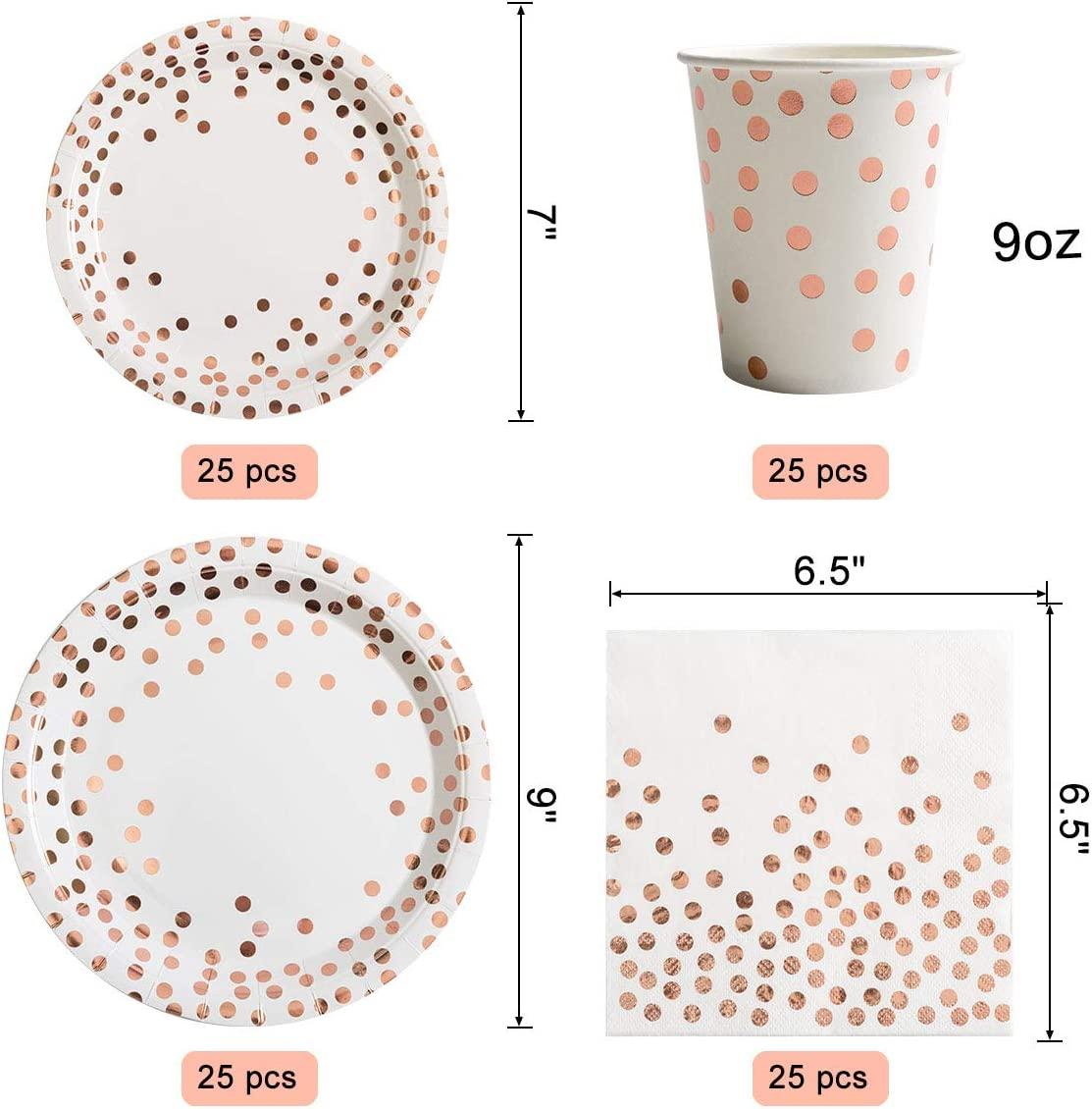 ✨ Rose Gold Dot Party Supply Set – 175-Piece Elegant Tableware Kit for 25 Guests | Rose Gold Birthday, Wedding, and Shower Decorations